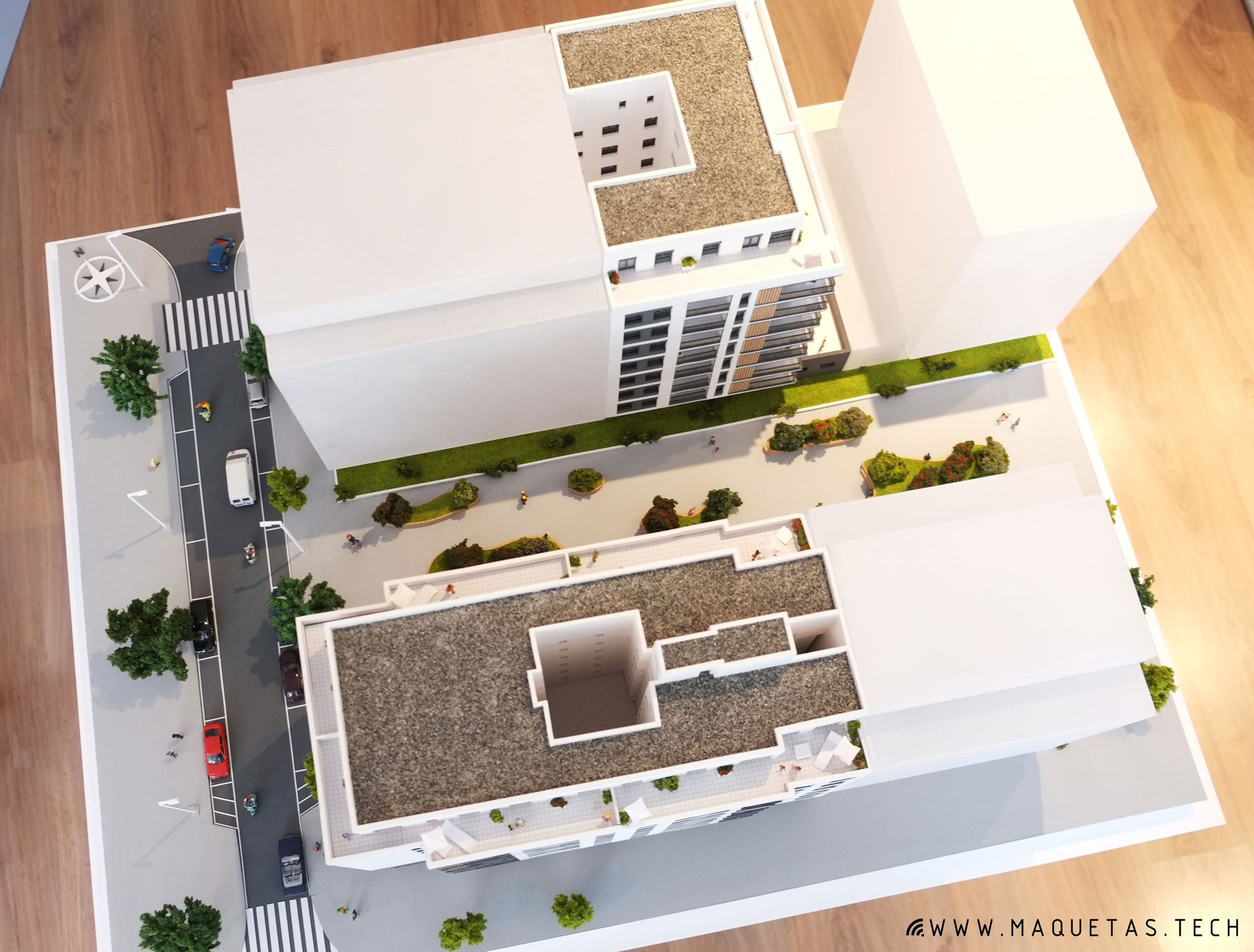 We have carried out the model of this new Habitat property development in Malaga. Two buildings of modern design next to the seafront promenade in the western part of the city.